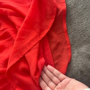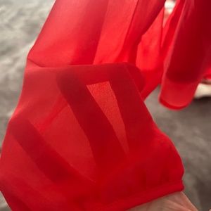 Coral coloured long sleeve blouse with camisole layer. In mint shape. Size is Large. Sheer through sleeves. 2 layers of fabric.