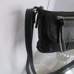 Great American Leather Work Black Shoulder Bag 100% Leather Polyester Lining 11"x8" x 2" Zipped on front , back and top; Adjustable leather strap Pre-owned