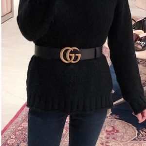 COPY - Gucci Black Leather Belt with Gold Double G Buckle