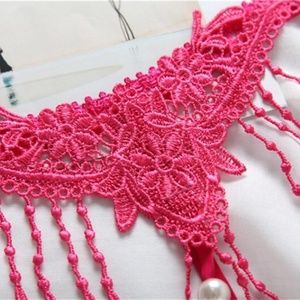 COPY - Hot Pink 5 Pearl T Back G String Open crotch Panties with embroidery