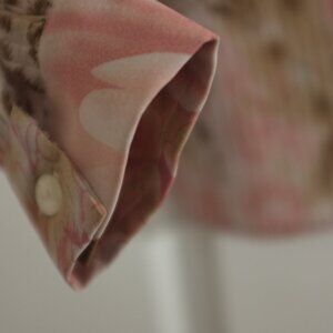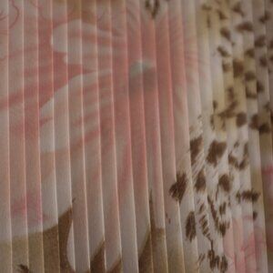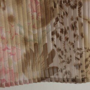 This Karen Arnold blouse features an elegant accordion pleat design and a beautiful floral pattern. The fabric is sheer, adding a delicate and airy feel to the blouse. It has a relaxed fit, making it perfect for both casual and dressy occasions. The blouse is versatile and can be paired with a camisole underneath for added coverage. Its lightweight and flowing nature make it a stylish addition to any wardrobe