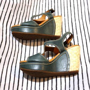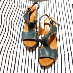 COPY - Lake blue leather buckled wedge sandals with crepe Sole