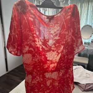 Never worn, red and white blouse. Lucky brand. With tie around the waist. Elegant and goes past belly button.