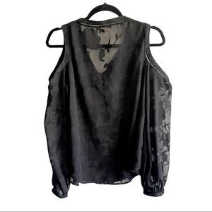 COPY - NANETTE LAPORE V-Neck Cold Shoulder Semi-Sheer Blouse Floral Design Bla…