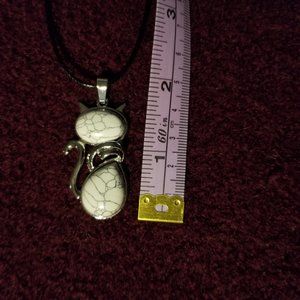 COPY - NWOT, white howlite gemstone cat pendant, silver plate on black cord, ar…