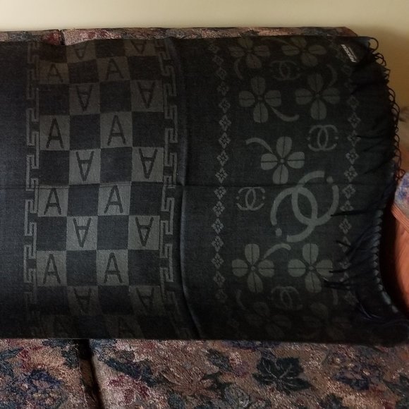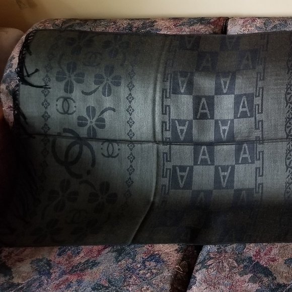 New in original packaging, double sided, reversible, with various patterns including a lucky four-leaf clover, winter scarf with a fringe. NWT in original bag, pashmina scarf = cashmere, unisex, men's or women's scarf, size OS. Width inches ~26, length inches 68, plus fringe. Dark green/olive green, black, dark gold, lucky 4 leaf clover, Irish shamrock, various patterns.