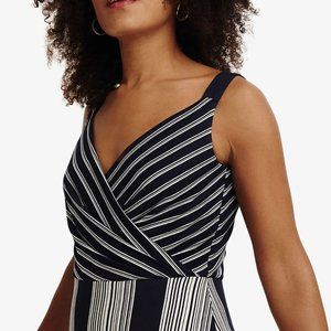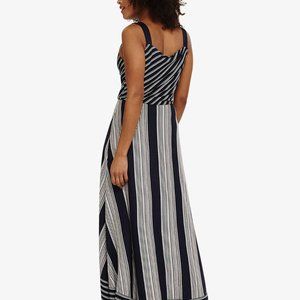 This sleeveless maxi dress is designed with a flattering wrap bodice, and a contemporary contrast stripe design. A timeless holiday hero you'll wear year after year. Composition: 98% Viscose 2% Elastane Lining: 100% Polyester