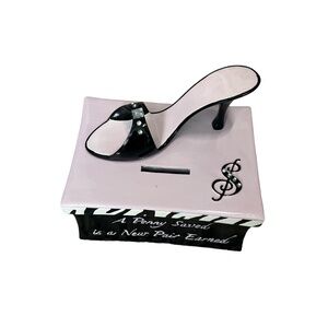 COPY - PIGGY BANK Ceramic Shoe Themed 'A Penny Saved is a New Pair Earned' Bling