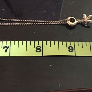 Pendant is about one inch long and the chain is 9” long with three hoops to make it adjustable.