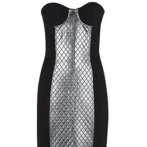 Calling all attention-seeking fashionistas! This Michael Kors Collection dress will make you feel unstoppable. Like a female heroine come to life, this midi dress created for the runway starts with a powerful zipper and adds a glorious center column of foiled diamond quilting. Attentive tailoring brings the feminine form to life with bustier cups, a sleek, fitted shape and a back slit, honoring this dress with the deserving advantage of incomparable manufacturing and textiles.No belt included