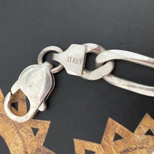 A gleaming like-new piece, about 9.25 inches long and weighing 26g. Figaro style, ID panel ready for your engraving. Marked 925 and Italy.