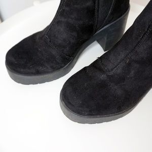 TOPSHOP Black Faux Suede Boot with chunky block heel