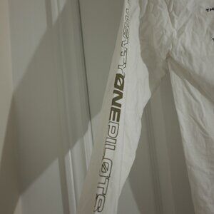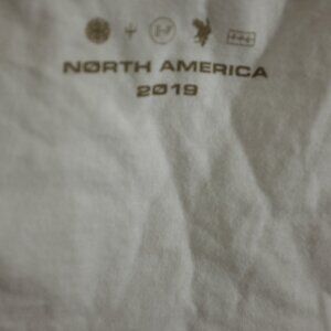 This Twenty One Pilots 2019 Bandito Concert Tour shirt is in excellent used condition. Made from soft, comfortable cotton, it features a distinctive "Bandito" graphic on the front and additional tour details on the sleeve. The long sleeves make it perfect for cooler weather, and it's ideal for fans of the band seeking a stylish and cozy concert memorabilia piece