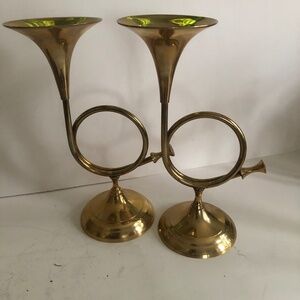 COPY - Vintage brass Trumpet candle holders. Gold horn candlesticks, Christmas…