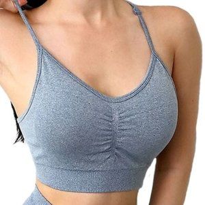 Pull-On closure. Made with 4-way stretch fabric, light weight seamless design allows this yoga bra to stick to your skin no matter how you move, offering maximum comfort and flexibility for your workouts. Adjustable straps and removeable padding, wire-free for additional comfort. Light to mid-support with ruched detail offers a touch of style. Moisture wicking fabric 87% Nylon 13% Spandex keeps you dry and cool throughout your workout.