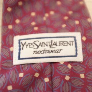 It is a sophisticated and luxurious accessory for formal or semi-formal occasions. The tie features a rich burgundy color, offering a bold and elegant statement. Crafted from 100% silk, it boasts a smooth texture and a subtle sheen, reflecting the high-quality craftsmanship associated with the Yves Saint Laurent brand. This tie is not only a stylish addition to any outfit but also a symbol of refinement and taste