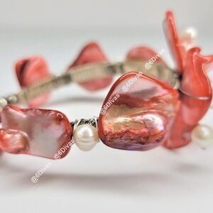 CORAL Color Sea Shell and Pearl Cuff Bracelet Adjustable