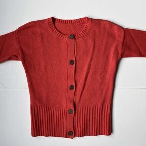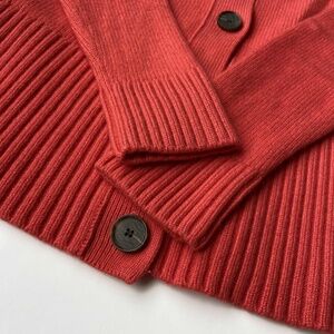 CORAL RED WOOL KNIT CARDIGAN BUTTON UP SWEATER COTTAGECORE COASTAL ACADEMIC
