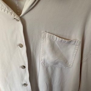 An everyday essential elevated by soft fabric, a slight drop sleeve and tortoise shell buttons