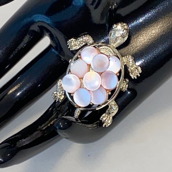 Rare Coro Mother Of Pearl Sea Turtle Brooch Pin Vintage Signed Coro Gold Tone Metal Costume Jewelry
