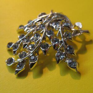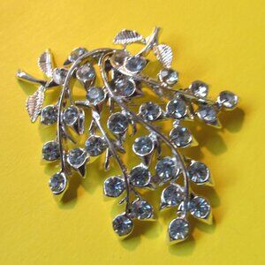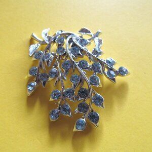 Pretty sparkly brooch by CORO. It is silver tone with almost clear light blue rhinestones.