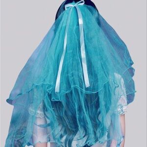 CORPSE BRIDE BLUE WATERCOLOR MESH BRIDAL VEIL RIBBON HAIR CLIP HALLOWEEN