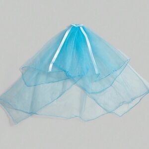 • Voluminous bright blue mesh fabric veil with ribbon in the back