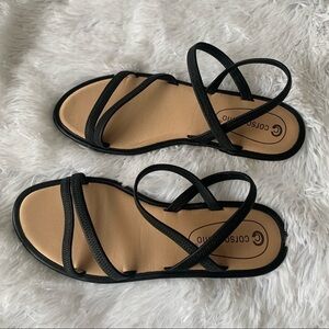 Brand new, no box! Slender, stretchy straps cross the vamp and wrap around the ankle of a breezy sandal set on a barely there wedge. -Brand: Corso Como -Color: Black ❓Questions? Ask me anything! 💰Don’t like the price? Make me an offer!