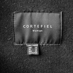 Patterned black cape from Spanish brand Cortefiel. Zipper in the front. Faux-leather trim. Length from shoulder to hem 79.0 cm. Size EU M. Excellent used condition.