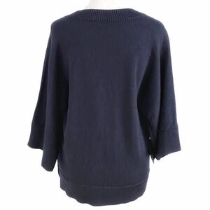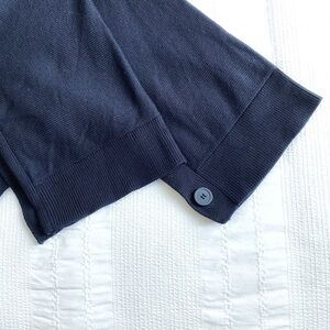 COS 100% WOOL NAVY SIDE BUTTON CREWNECK WIDE HALF SLEEVES KNITTED SWEATER - XS
