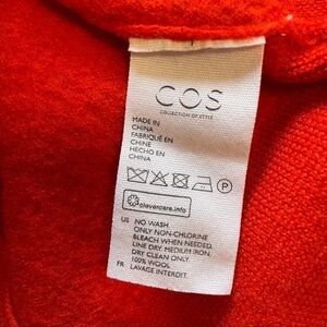 COS 100% Wool Red Hooded Pullover Cozy Sweater XS