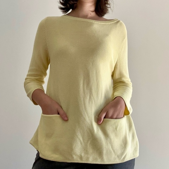 COS BATEAU 2 POCKETS KNIT A LINE SWEATER BUTTER YELLOW - S