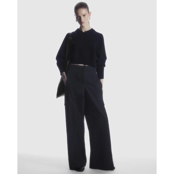 COS Black Cotton Canvas High Rise Wide Leg Cargo Pants, Size 2