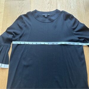 Elegant black sweater with pleated sleeves. Features white accents for a chic look. Perfect for any occasion. It is in pristine condition! So beautiful, classy and versatile !