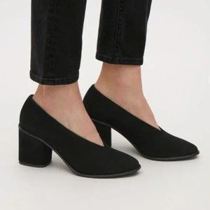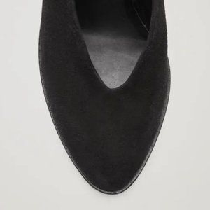 COS Black Suede Pointy Toe Chunky Heel Pumps Slip-On Shoes Block Heels