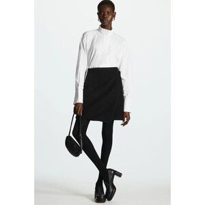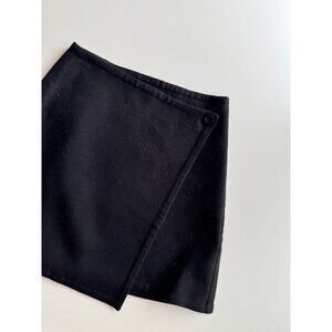 COS Black Wool Lyocell Blend Felt Front Button Mini A-Line Wrap Skirt, Size 34