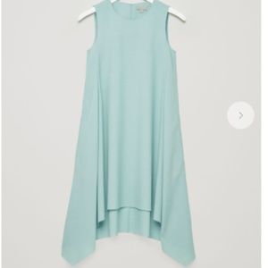 This sleeveless dress features voluminous side drape details for a flowy, A-line silhouette. Made from a lightweight material, it has a neat round neck, an asymmetric hemline and discreet side-pockets. Light-blue colour.