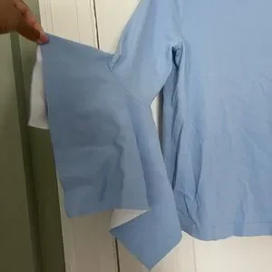 Elevate your style with this elegant blue top featuring chic ruffle sleeves. Perfect for any occasion.