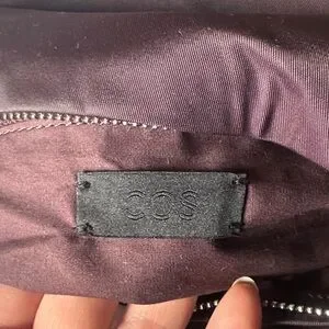 Minimal COS crossbody with drawstring top. Smooth fabric exterior and zip pocket. Slim strap for easy wear. Clean, modern silhouette.