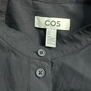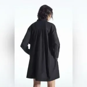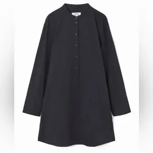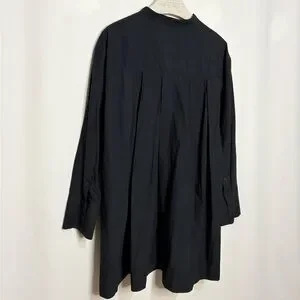 Designed with a collarless neckline and features a pleated back panel that lends additional volume to the relaxed shape. The buttoned placket and cuffs nod to classic tailoring.