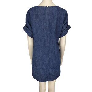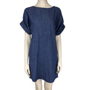 COS Denim Looking Contemporary Blue Hemp+Cotton Short Sleeve Shift Mini Dress
