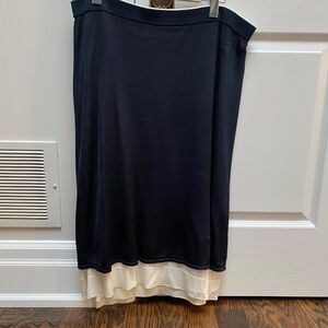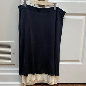 Gorgeous elegant navy and cream skirt with visible layer. Size L. 100% viscose with lots of stretch.
