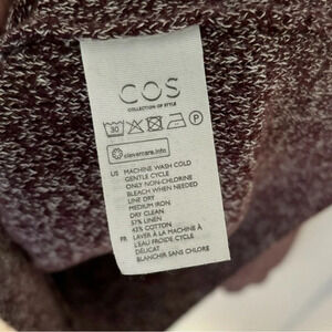 COS Heavyweight Linen Cotton Burgundy Red Marled Crew Neck Knit Sweater Size XS