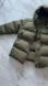 - khaki-green puffer coat, filled with pillowy down and feathers