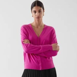 COS Knit Cardigan Silk Cotton V Neck Varsity Pink Barbie Lightweight S Oversized