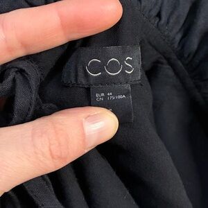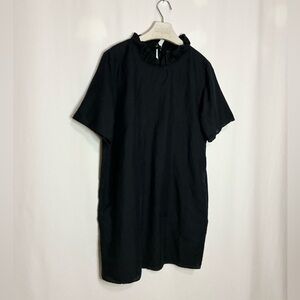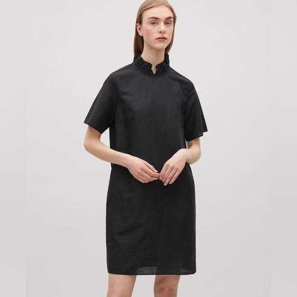 Linen blend ruffle neck dress in black from COS.