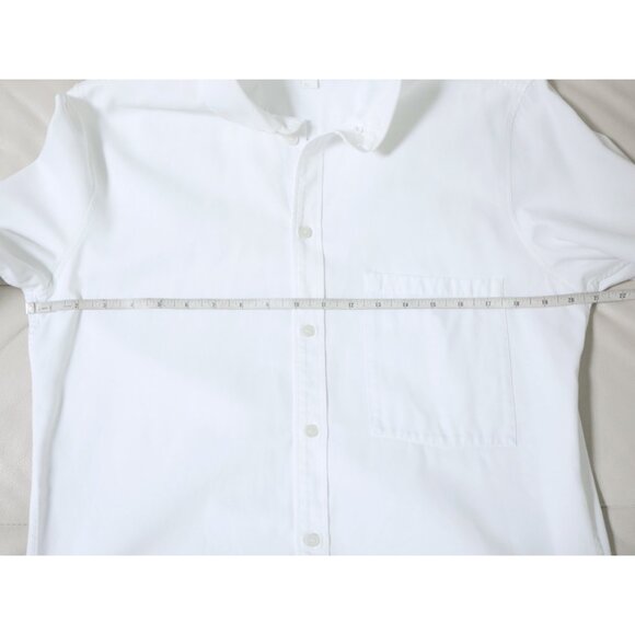Bright white with a single pocket detail, size small. A balance between formal and casual. This piece is made from brushed TENCEL™ Lyocell and cotton and tailored in a relaxed fit that layers well over tees. It has buttoned cuffs and a pocket on the chest.