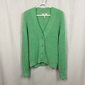 Beautiful COS cardigan in a fresh mint green shade. Features a ribbed knit texture, classic V-neckline, and button-front closure for an effortlessly polished look. Designed with a relaxed yet structured silhouette that COS is known for — perfect for layering over tanks, tees, or dresses.