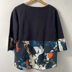 COS Mix fabric Abstract Navy Paint Pattern Pullover Woven/Knit oversized Top S