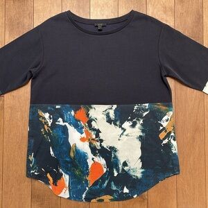 COS Mix fabric Abstract Navy Paint Pattern Pullover Woven/Knit oversized Top S